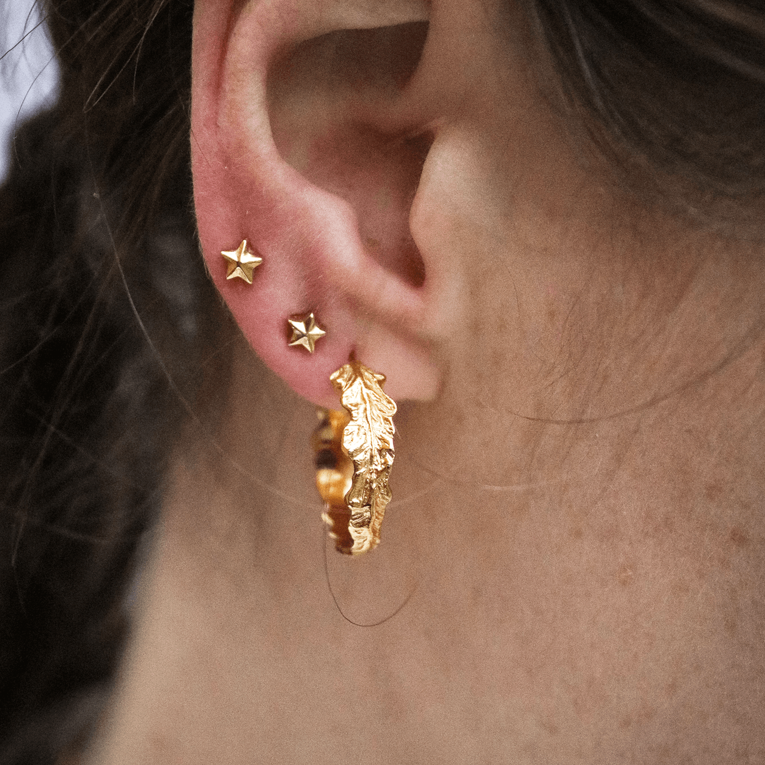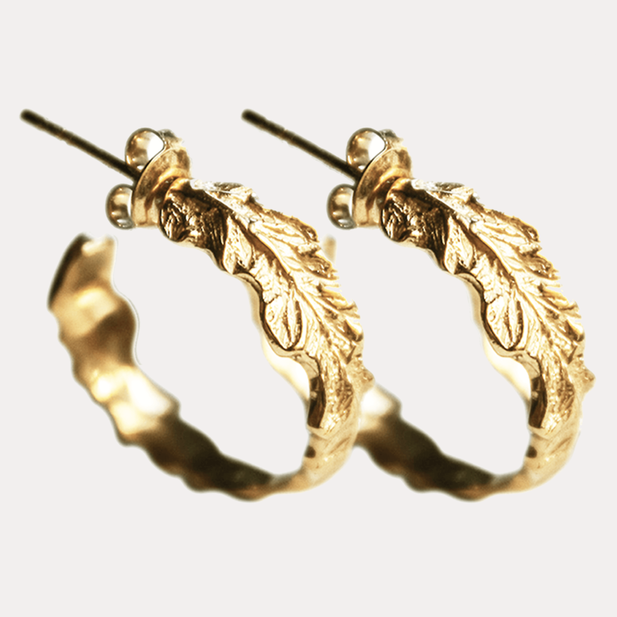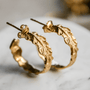 LIŚCIE PAPROCI kolczyki large hoop, złocone