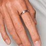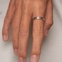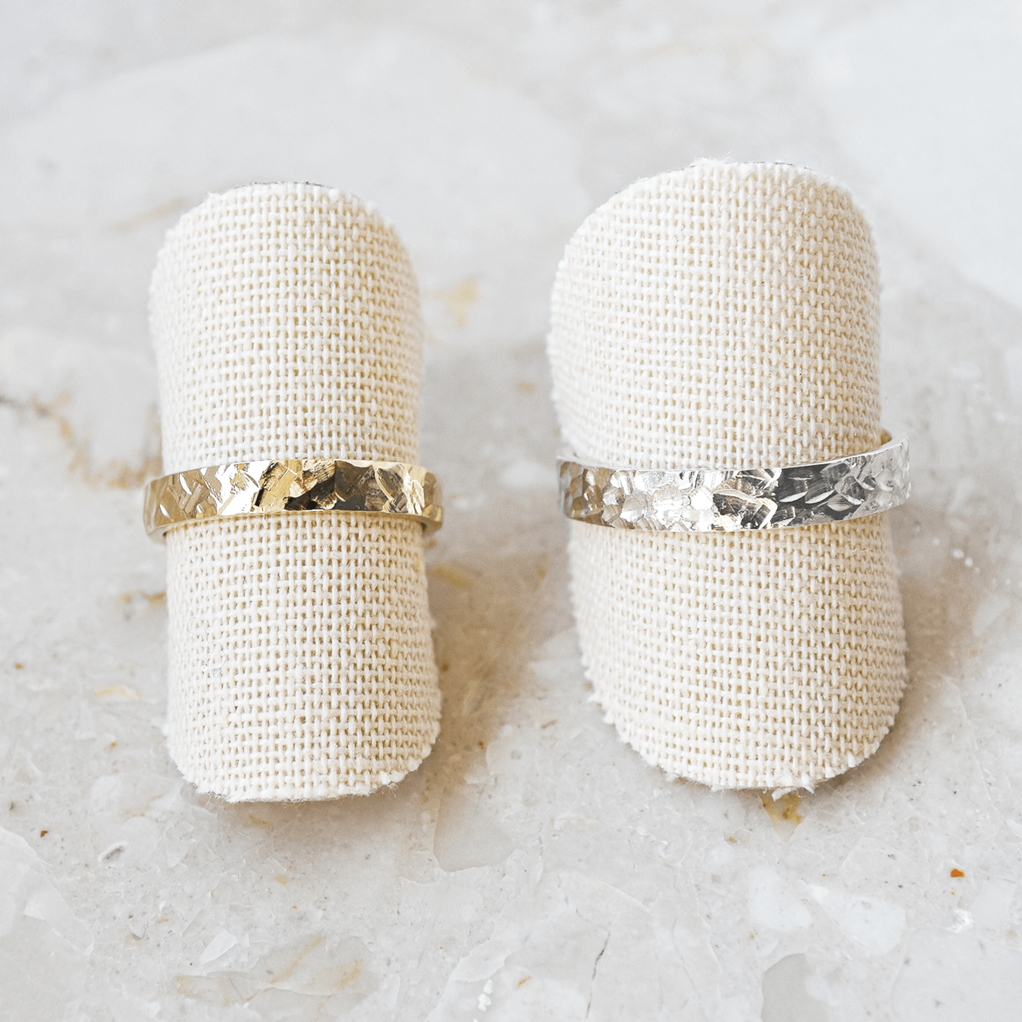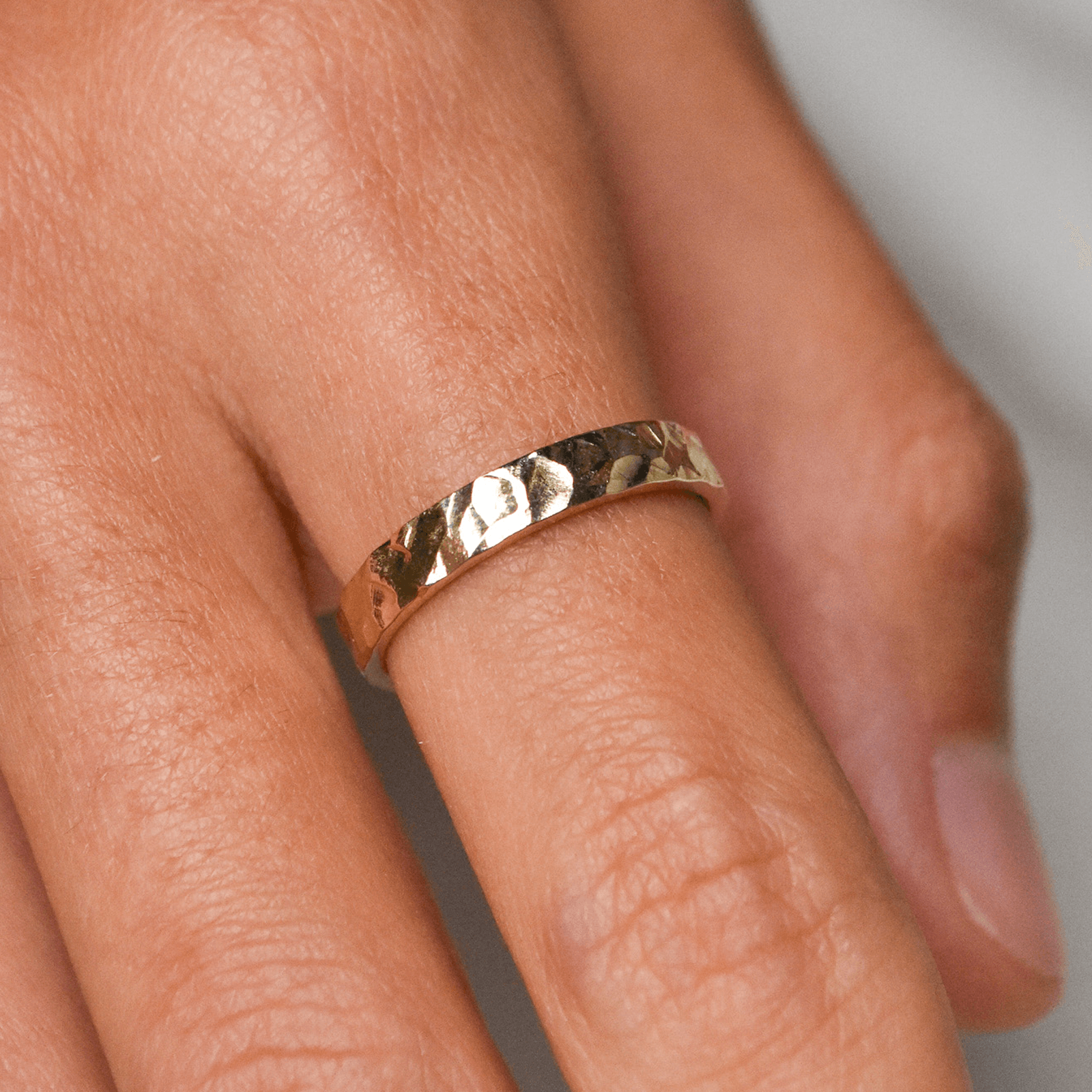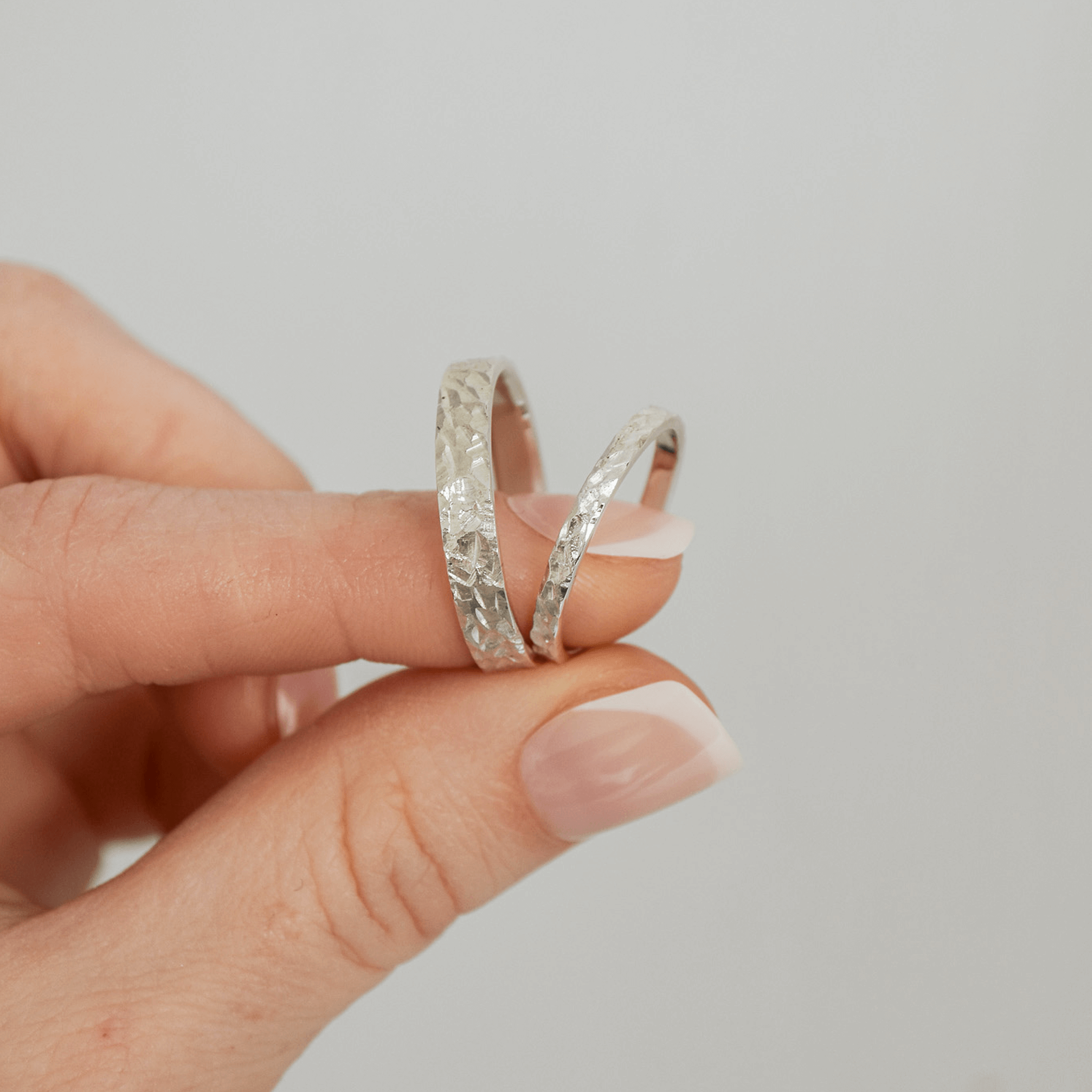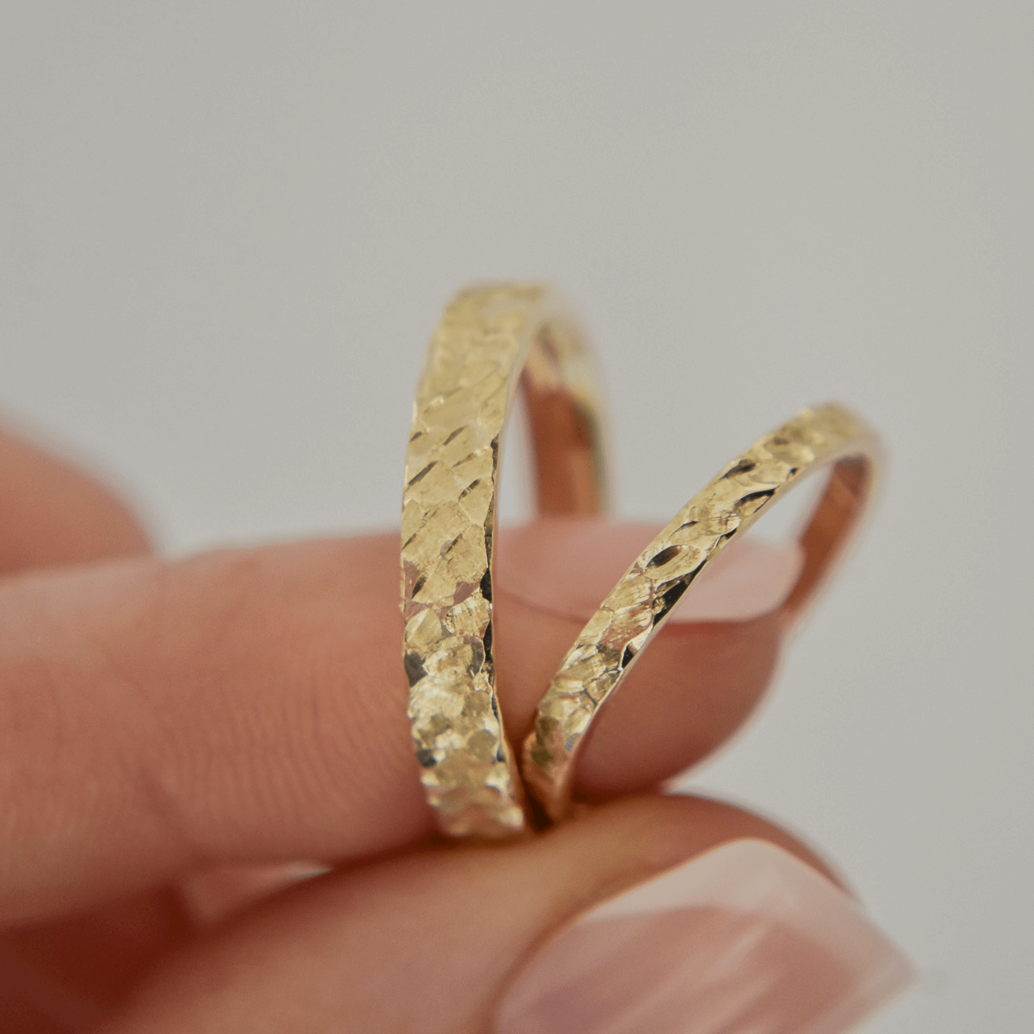 Odkryj młotkowane obrączki You Rock – symbol miłości, który odzwierciedla siłę i unikalność. Te ręcznie robione obrączki, stworzone w naszym warsztacie, to idealne połączenie nowoczesnego designu z ponadczasowym rzemiosłem. Ich kanciasty, modernistyczny kształt i satynowe wykończenie to hołd dla geometrycznej precyzji, a każdy ślad jubilerskiego młotka nadaje im absolutnie wyjątkowy charakter. Wewnątrz obrączka jest idealnie wypolerowana na błysk, zapewniając niezwykły komfort noszenia, podczas gdy jej młotkowana powierzchnia intryguje, mieniąc się w subtelny, geometryczny sposób. Dzięki uniwersalnej formie i różnym opcjom szerokości, młotkowane obrączki You Rock to idealny wybór zarówno dla niej, jak i dla niego.